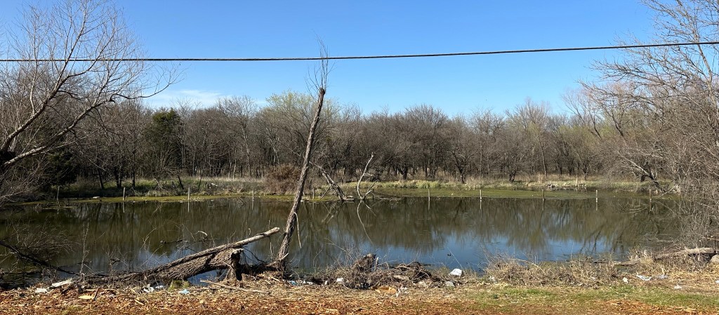 Along this drive I noticed a dirty little pond. It’s roadside along a road that passes below the Lewisville Lake dam. It’s quirky and dirty, and I found I looked forward to seeing it along my commute.